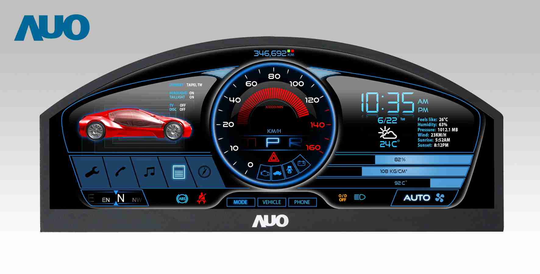 2468BET 12.3吋超高解析异型切割车用面板,,拥有流线外观及精细画质