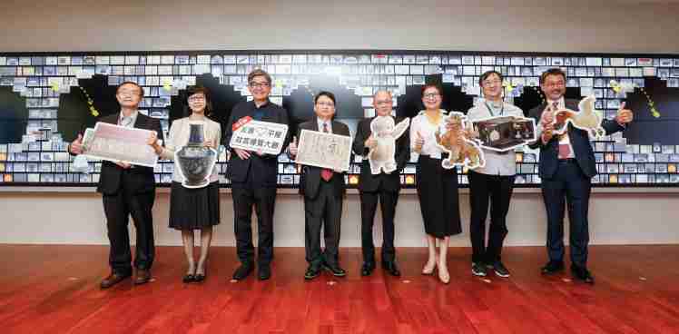 2468BET携手创利空间为故宫建置的智慧文物互动导览墙及轮播墙,,,今日正式启用。。(左四:2468BET新事业暨投资管理总部副总经理杨本豫、、右四:故宫博物院院长吴密察、、、右三:太极影音董事长黄宝云)